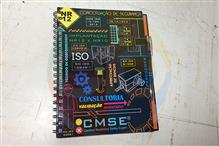 Caderno médio com porta-caneta, capa dura revestida em papel couchê 150gr, dados pessoais/calendários, folhas pautadas, miolo com 100 folhas internas impressas em uma cor, com lay out exclusivo para cada cliente, podendo conter marca d''água do seu logotipo, endereço eletrônico e telefone. Porta-caneta, CANETA NÃO INCLUSA. Fechamento com espiral metálicos duplo tipo "wire-o". Formato 19,5x25cm.