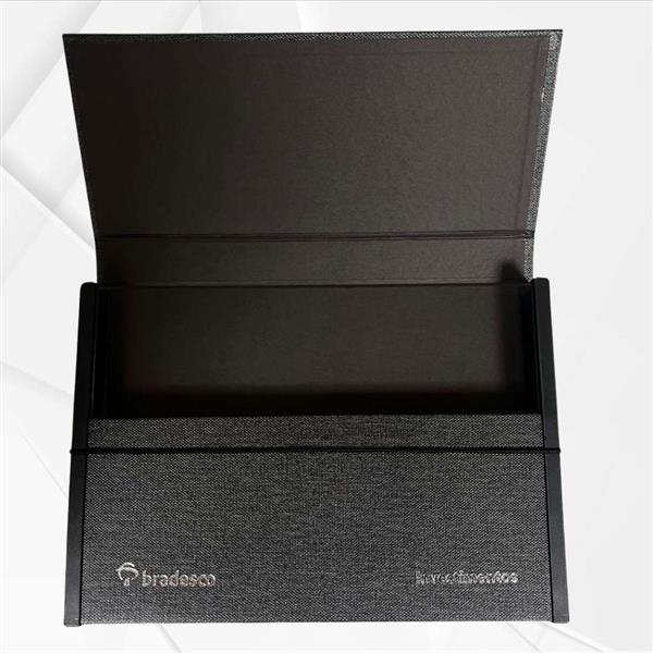 Pasta congresso personalizada, pasta de congresso acartonada, revestida em percalux premium, forrado com color plus. Fechamento com elástico. Medidas: 350 x 225 x 50 mm. Personalização em 1 cor já incluso.